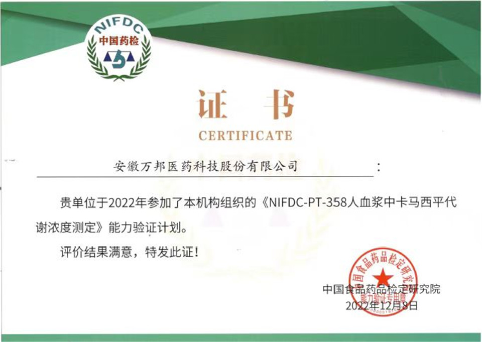 中國(guó)食品藥品檢定研究院能力證書(shū) |