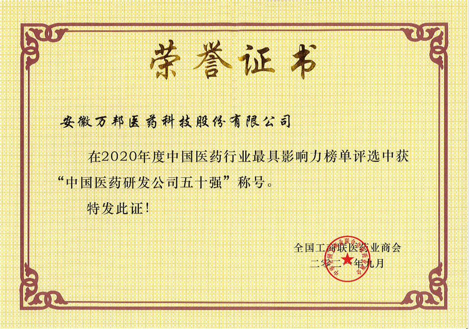 2020年中國(guó)醫(yī)藥研發(fā)公司50強(qiáng) |