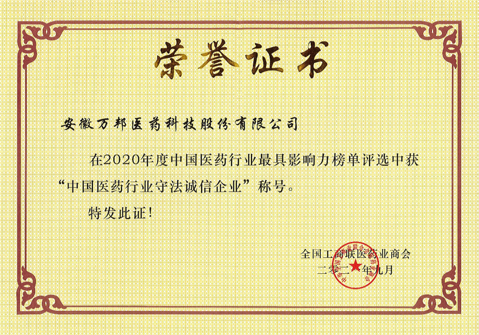 2020年中國(guó)醫(yī)藥行業(yè)守法誠(chéng)信企業(yè) |
