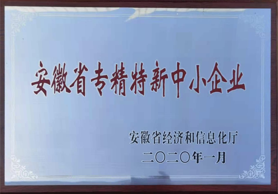 安徽省專(zhuān)精特新中小企業(yè)證書(shū) |