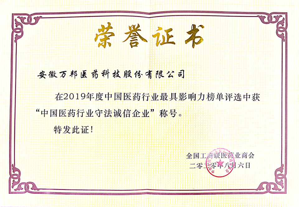 2019中國(guó)醫(yī)藥守法誠(chéng)信企業(yè) |