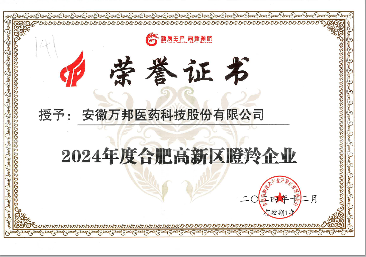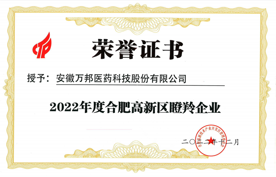 合肥高新區(qū)瞪羚企業(yè)證書(shū) |