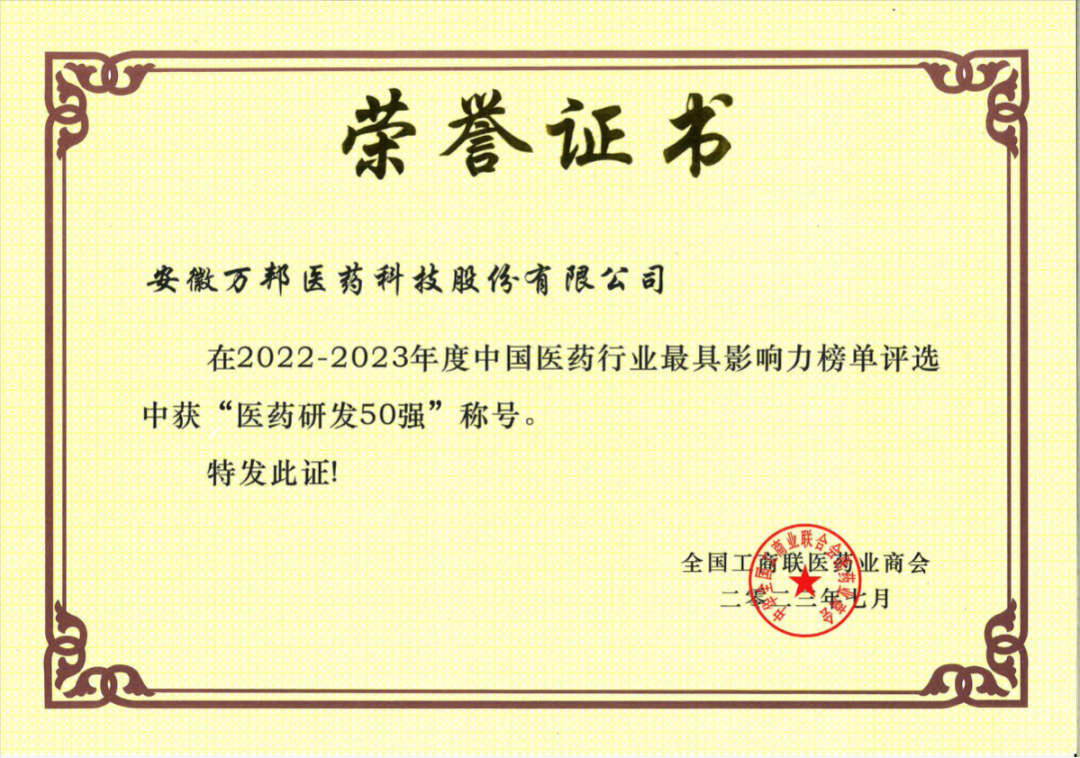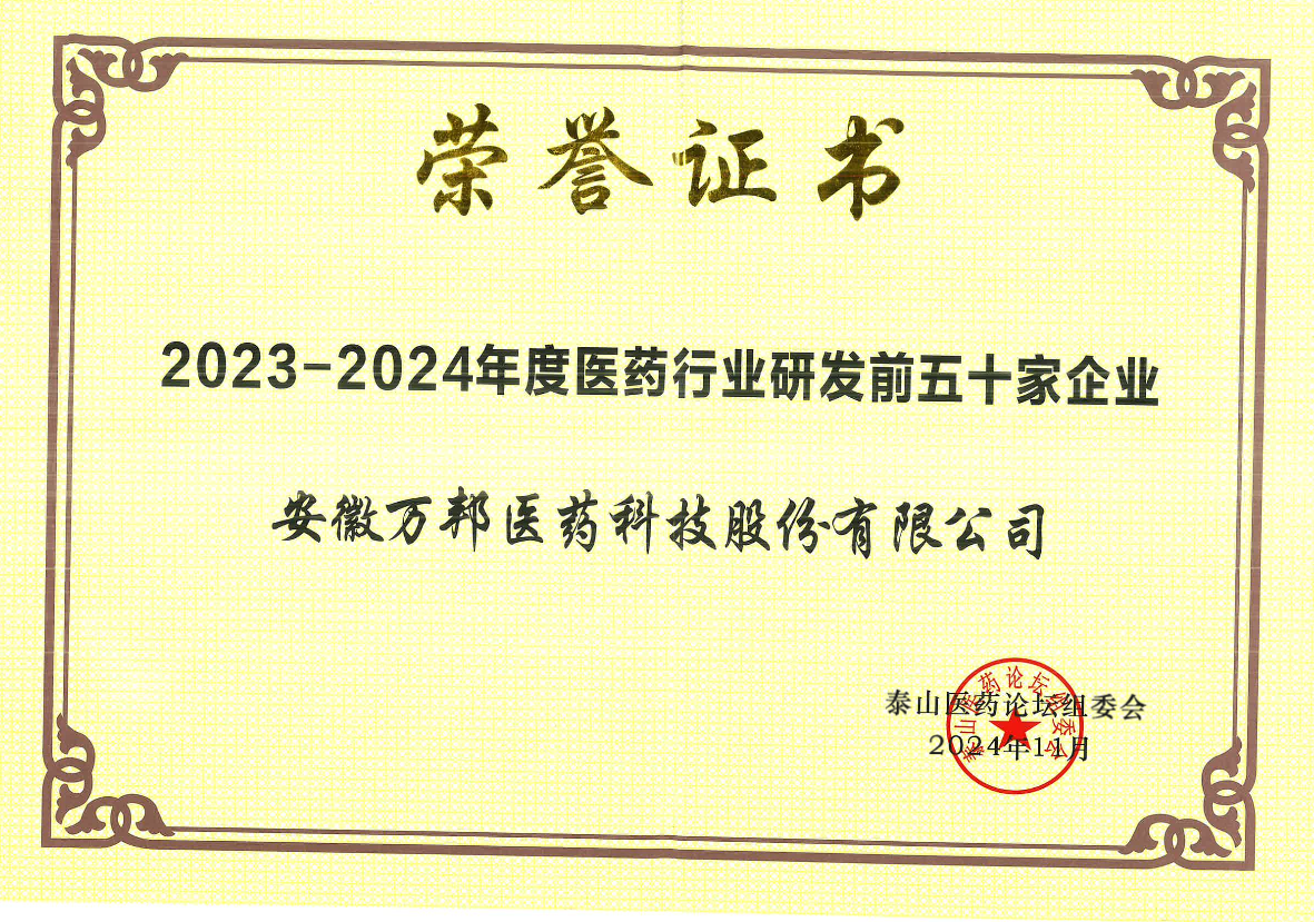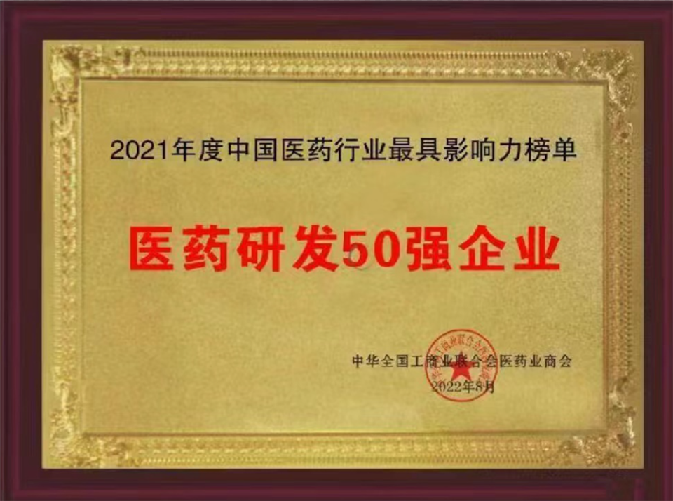 2021年醫(yī)藥研發(fā)50強(qiáng)企業(yè)證書(shū) |