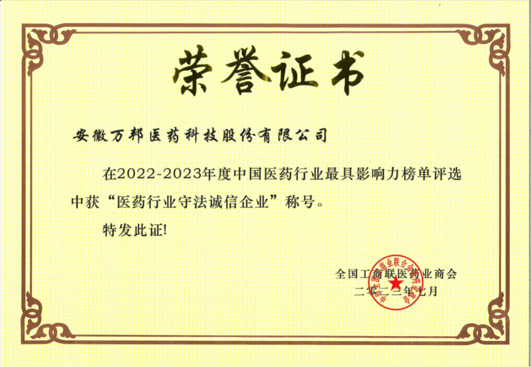 2022-2023年度醫(yī)藥行業(yè)守法誠(chéng)信企 |