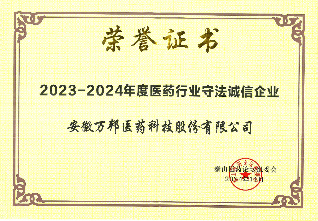 2023-2024年度醫(yī)藥行業(yè)守法誠(chéng)信企 |