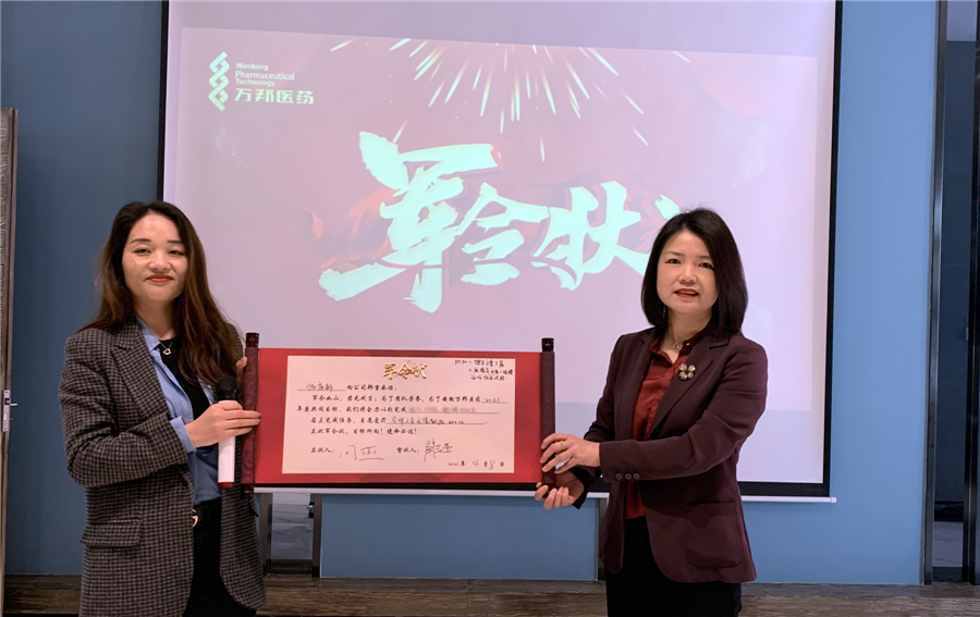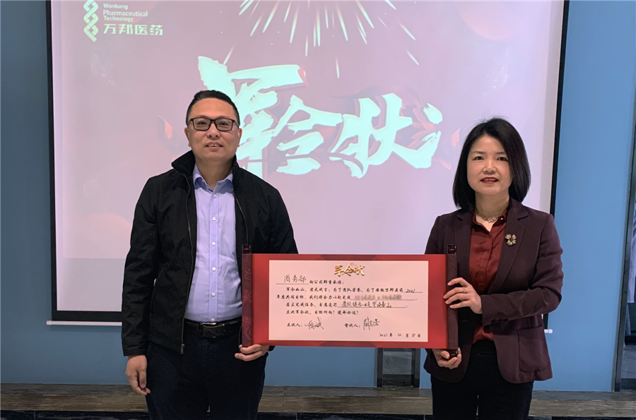 各業(yè)務(wù)部門負責人進行軍令狀宣讀并立下2021年度任務(wù)規(guī)劃,安徽萬邦醫(yī)藥董事長陶春蕾女士出席會議并作為督狀人與全體員工共同見證。