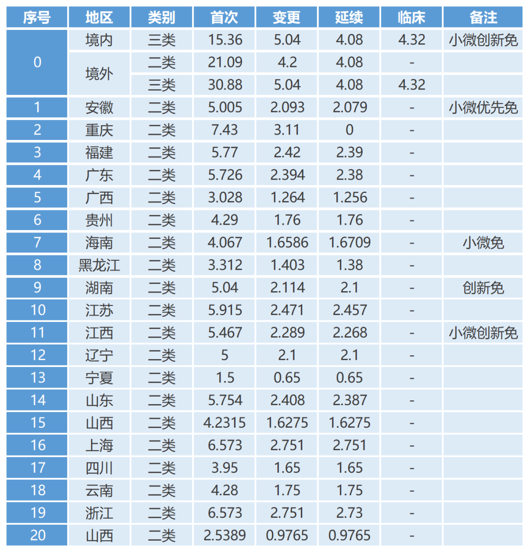 備注:注冊(cè)收費(fèi)單位為萬(wàn)元。北京、天津、內(nèi)蒙、河北、河南、陜西、湖北、吉林、新疆、西藏、青海注冊(cè)不收費(fèi)。