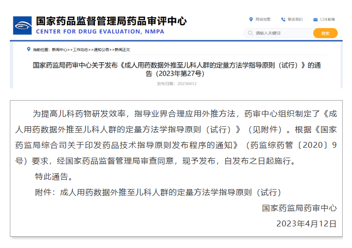法律法規(guī)|CDE關(guān)于發(fā)布《成人用藥數(shù)據(jù)外推至兒科人群的定量方法學(xué)指導(dǎo)原則(試行)