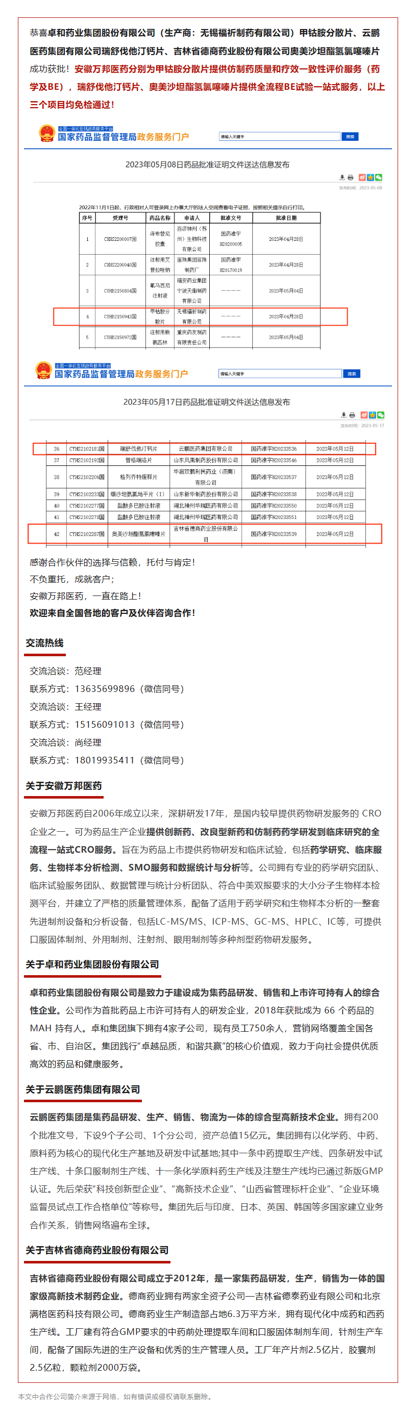 喜報|安徽萬邦醫(yī)藥助力多個項目成功獲批