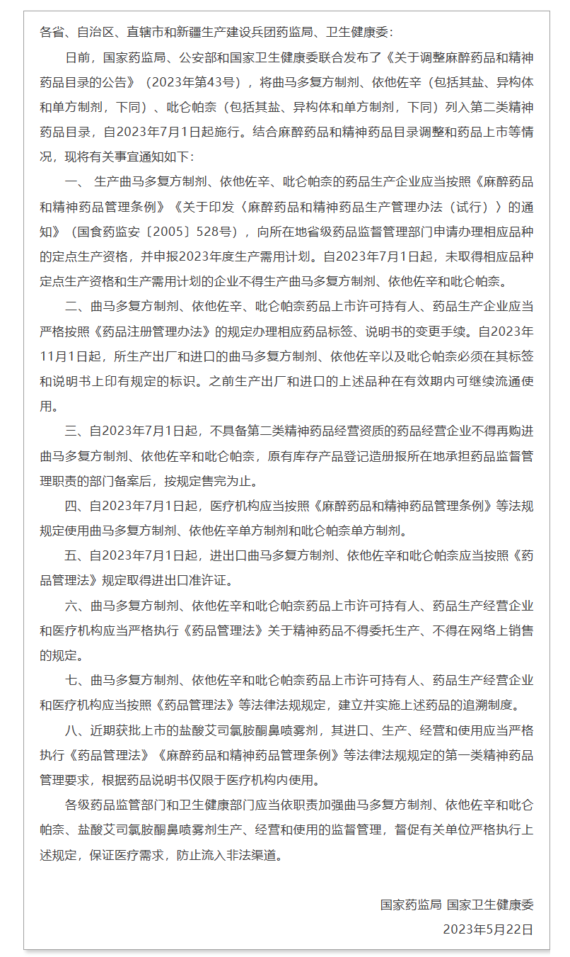 法律法規(guī)|國家藥監(jiān)局 國家衛(wèi)生健康委關(guān)于加強(qiáng)曲馬多復(fù)方制劑等藥品管理的通知